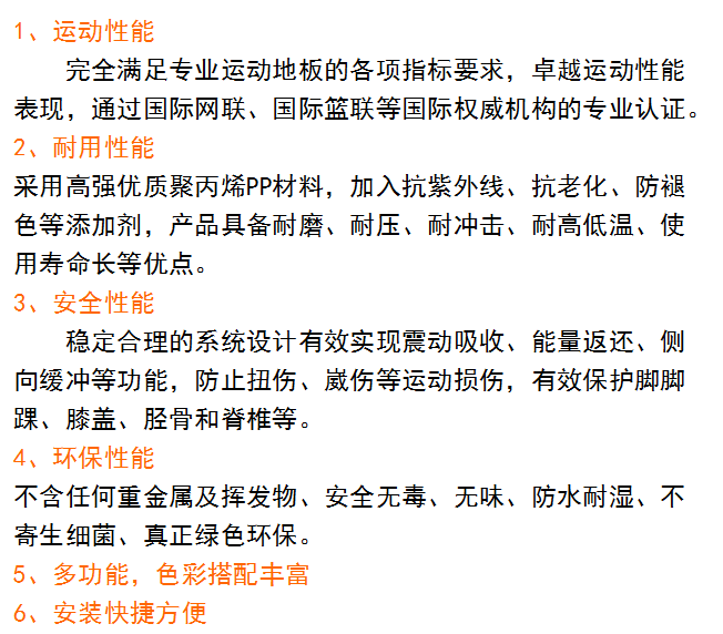 多功能懸浮拼裝地板球場(chǎng)系列產(chǎn)品特點(diǎn):