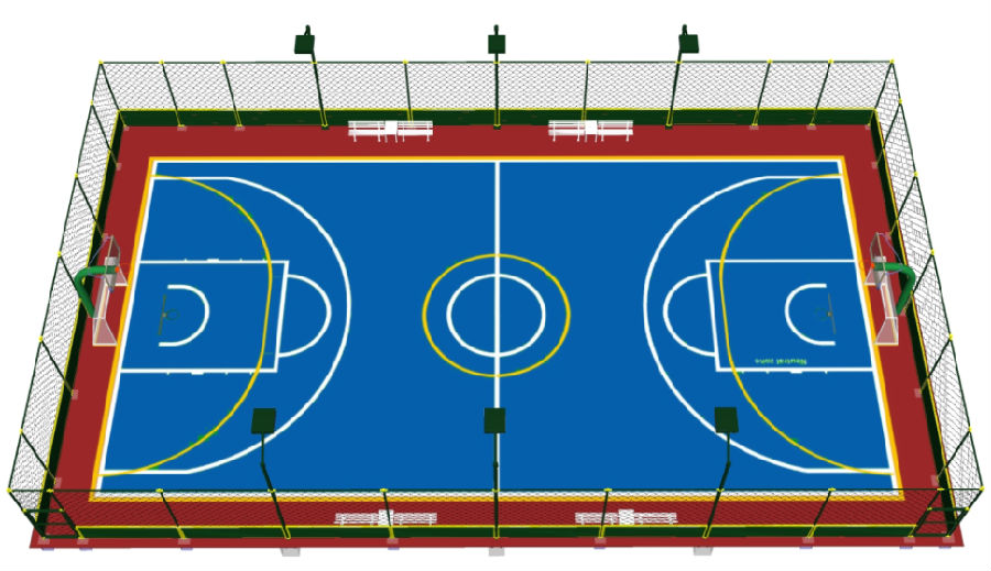 籃球場(chǎng)、羽毛球場(chǎng)、排球場(chǎng)、五人制足球場(chǎng)、乒乓球場(chǎng)、網(wǎng)球場(chǎng)及多用途場(chǎng)地等。